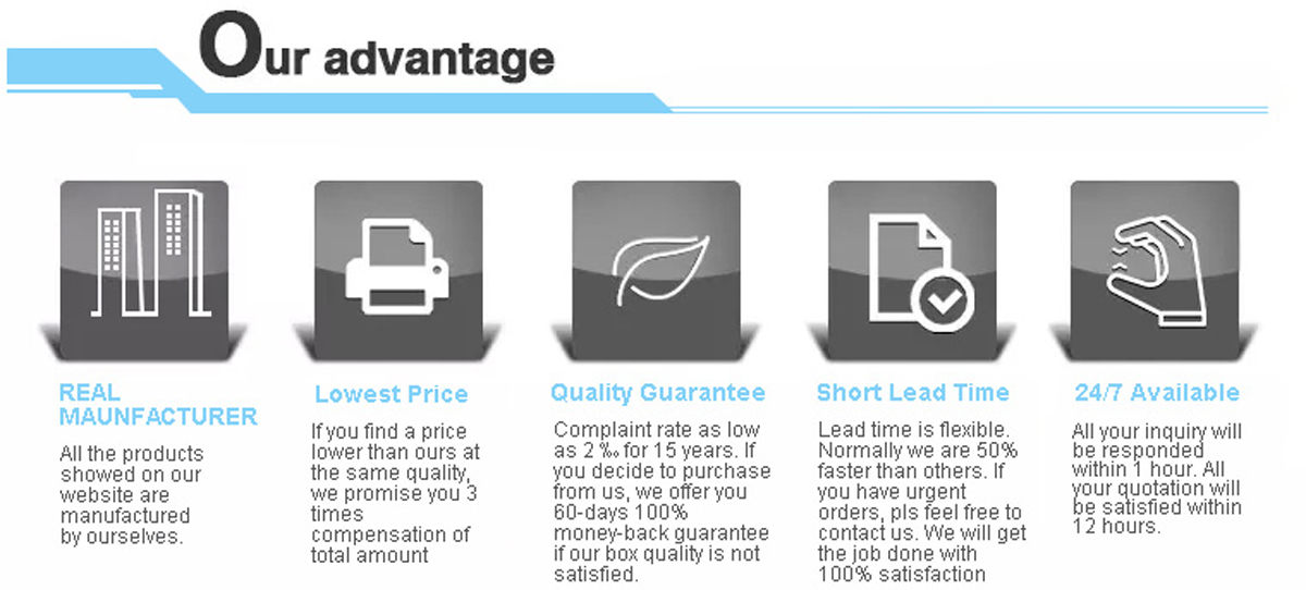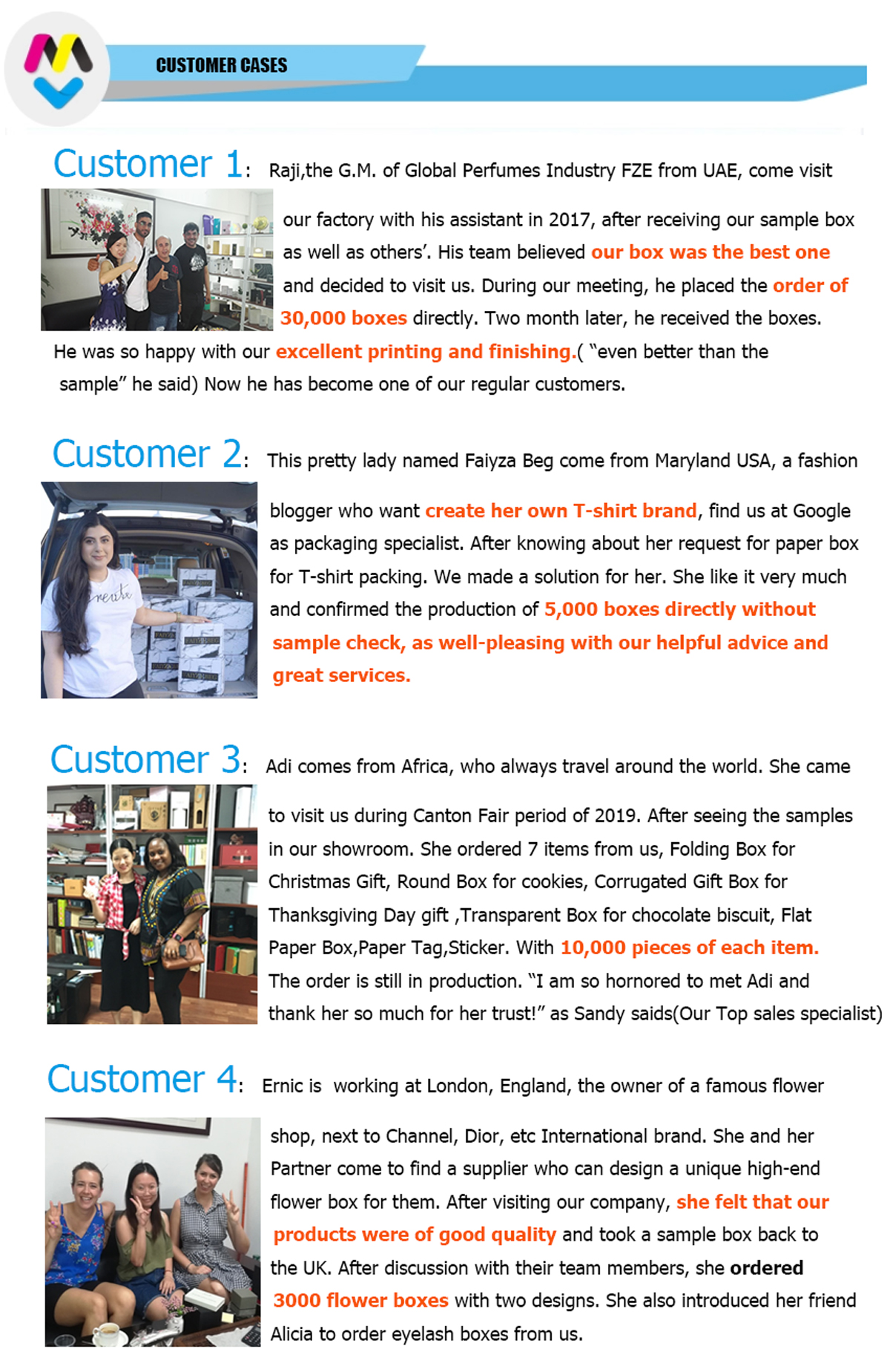 Wir erwarten, dass Sie mit unserer Verpackung zufrieden sind! Kundenzufriedenheit und Anerkennung sind für uns die beste Bewertung. Basierend auf Aufrichtigkeit, Professionalität und Qualitätsbewusstsein möchten wir unseren Freunden im Ausland mehr hochwertige, in China hergestellte Verpackungsprodukte anbieten und so den Wert ihrer Produkte maximieren.