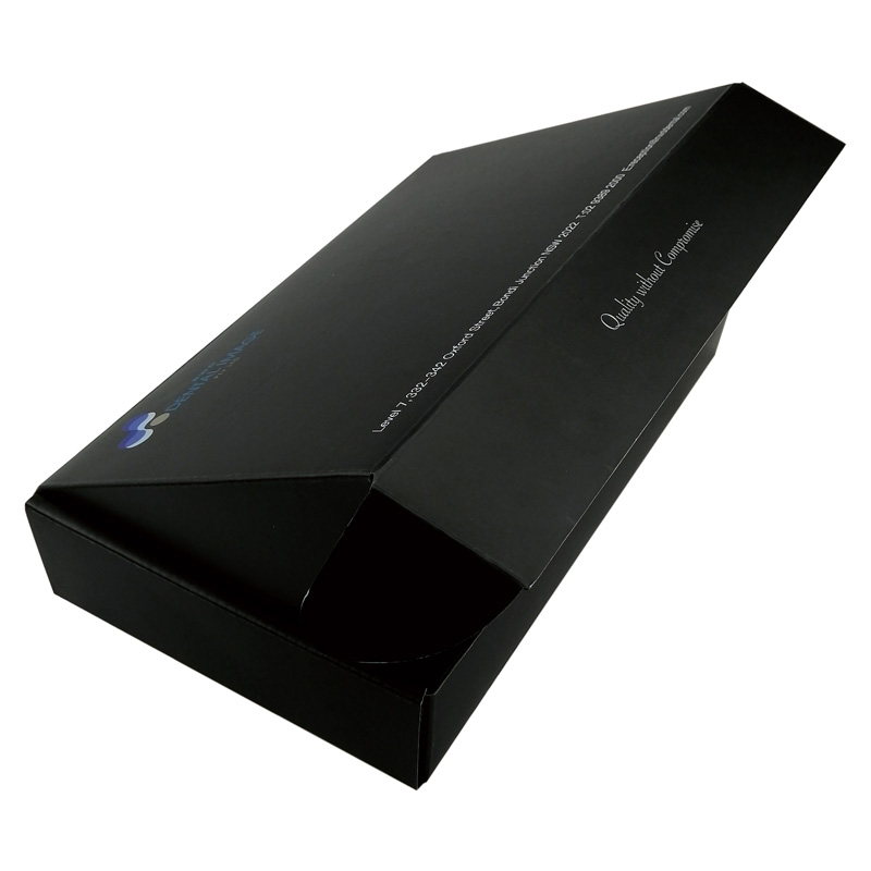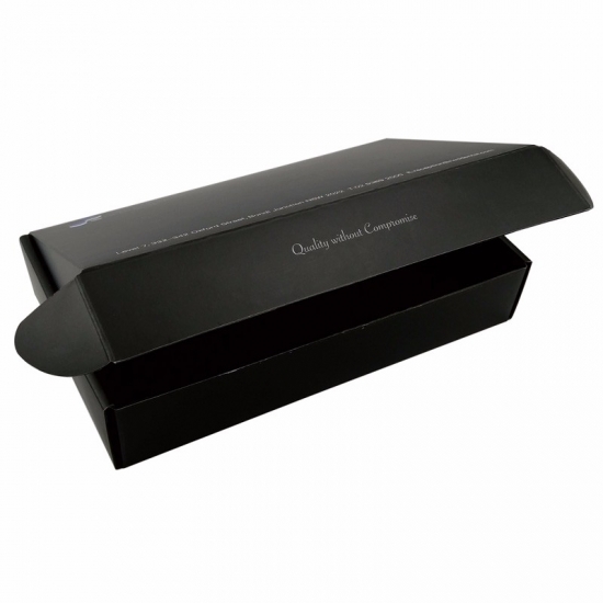 Dies ist ein leere Versandkartons die aus schwarzem Papier + BE-Flöte + 300 g CCNB , außen auf der Schachtel voller schwarzer Schrift mit kurzem Text in der Ecke, Innendeckel mit schwarzem Normalpapier.