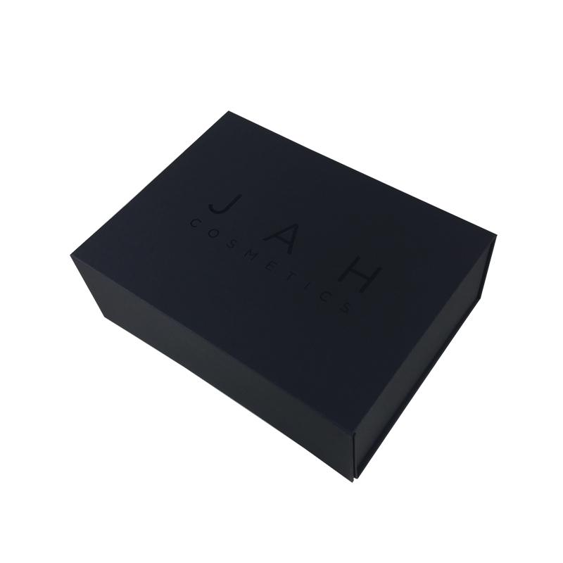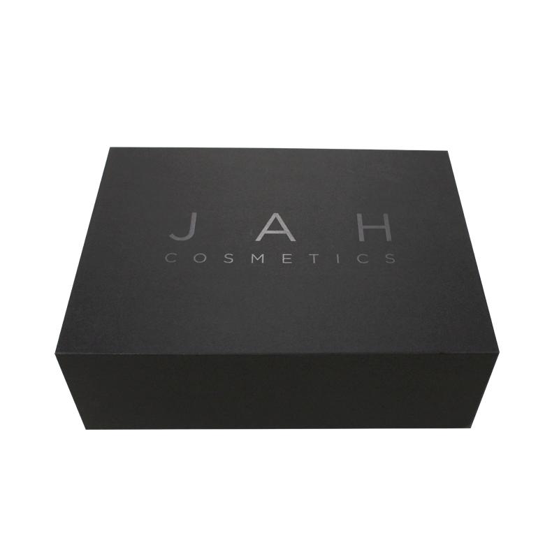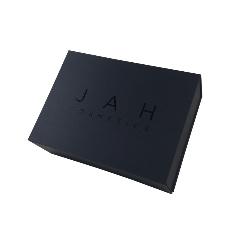 Dies ist eine faltbare Geschenkverpackung mit Klappdeckel was machte aus schwarzem Papier + 1200g Graupappe, es handelt sich um schwarze Faltschachteln aus Karton mit Magnetverschluss, das Logo auf der Oberseite des Deckels ist UV-beschichtet.