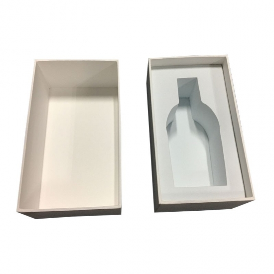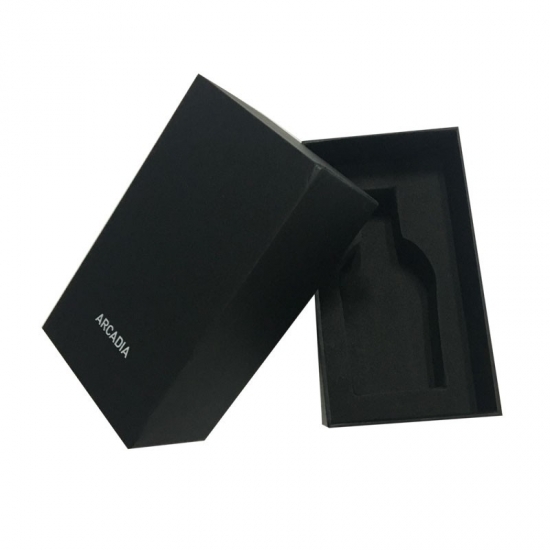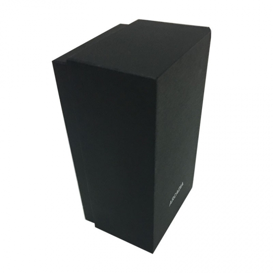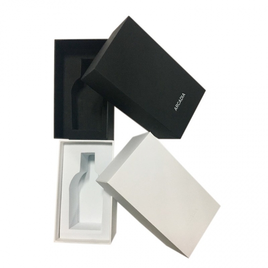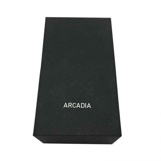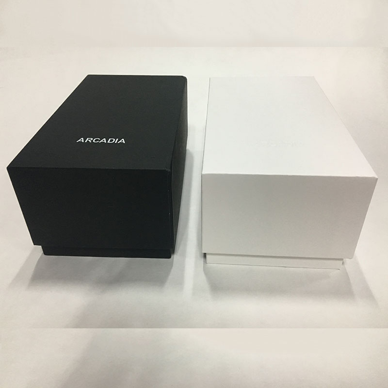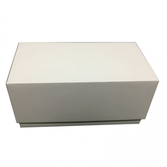 Dies ist ein Geschenkboxen mit Deckel was machte aus 157 g C2S-Kunstdruckpapier + 1200 g Graupappe, Farbe Weiß mit matter Laminierung, und Farbe Schwarz mit weißem Folienprägungslogo auf dem Deckel.