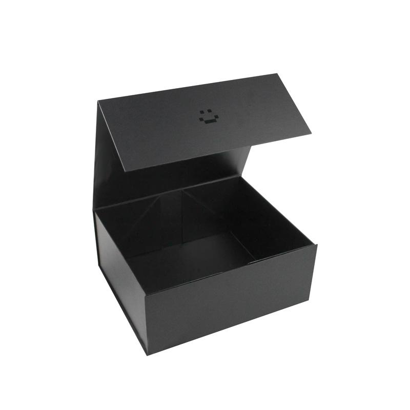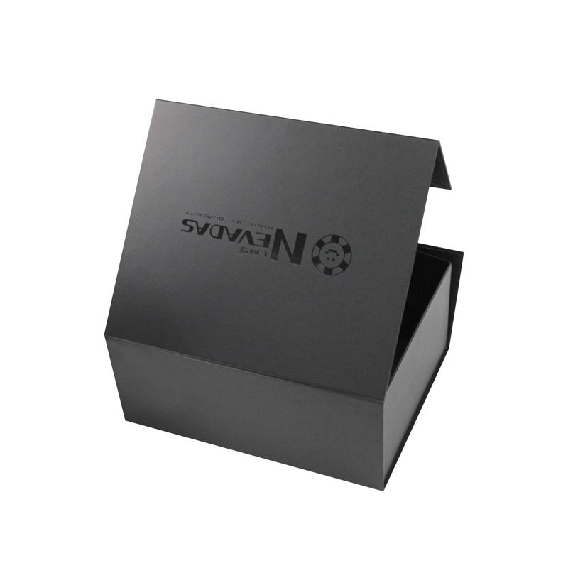 Normally 15-20 days after design/sampleSchwarze faltbare Geschenkbox aus Papier mit UV-Logo