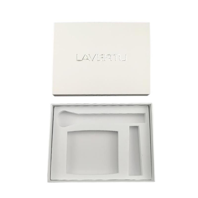 Die Struktur besteht aus zwei Teilen, einem äußeren und einem inneren Karton. Der äußere Karton kann mit Ihrem Logo personalisiert werden, und für den inneren Karton können Sie Einsätze wie Samt, PE-Schaum oder Schaumstoff wählen.