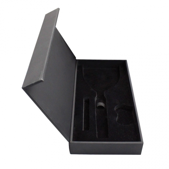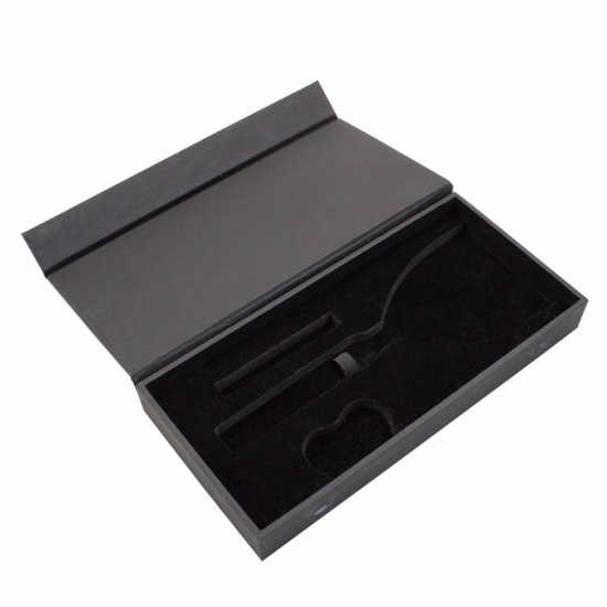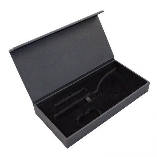 Maßgefertigte schwarze Boxen mit Magnetverschluss. Einzigartige Handwerkskunst. Ausgestattet mit hochwertiger Innenstütze. Schlicht und luxuriös. Besondere Note. Geeignet für verschiedene Accessoires, Metallprodukte usw.