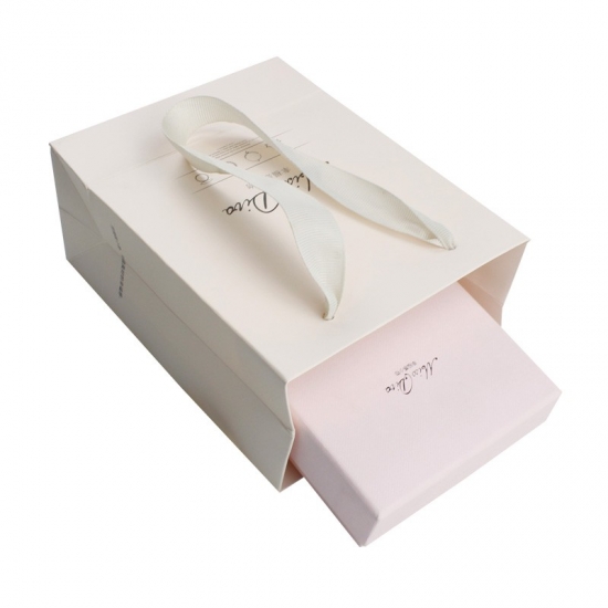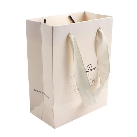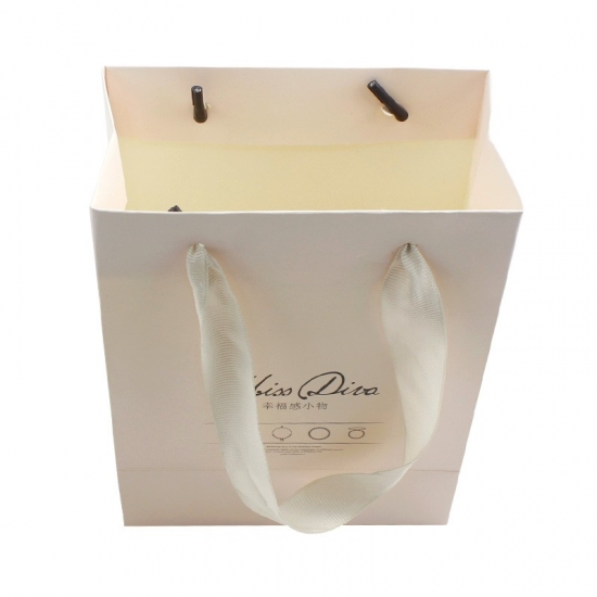 Diese kleinen Geschenktüten sind in CMYK-Farben auf 250 g/m² C1S-Kunstdruckpapier gedruckt, haben eine matte Oberfläche und ein Band mit Kunststoffende. Beliebter Verpackungsstil für Werbegeschenke wie Schmuck, Kosmetik, Babyschuhe usw.