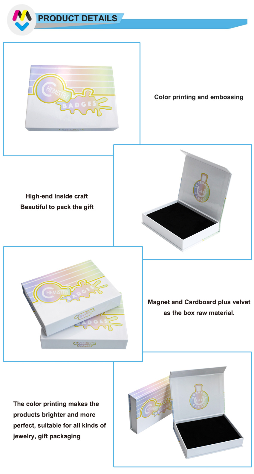Die farbenfrohe Flip-Geschenkbox wurde aus 157 g/m² C2S-Kunstdruckpapier hergestellt, das mit 2 mm Graukarton laminiert wurde. Als Zubehör dient eine mit Flanell kaschierte Graupappe. Es handelt sich um eine sehr magnetische Geschenkbox mit Farbdruck und matter Laminierung. Sie ist farbenfroh und sieht modisch aus.