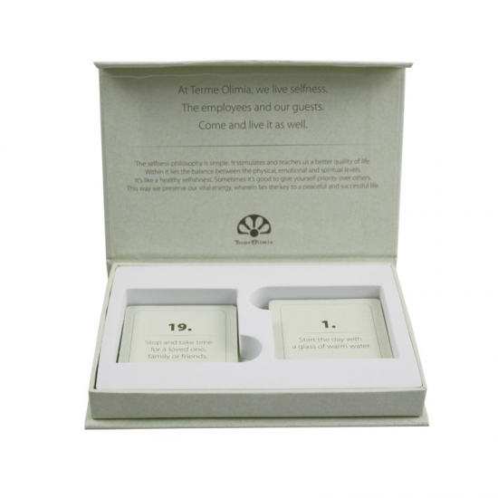 2) Material: 157 g/m² C2S Artpaper-Laminierung, 1200 g/m² Graukarton, Eva-Schaum, Papierkarte