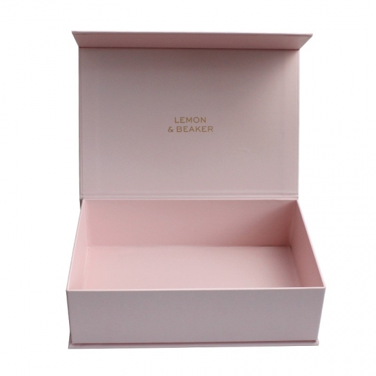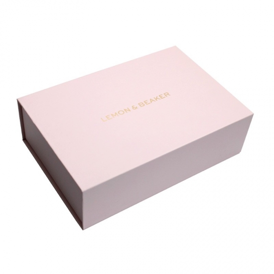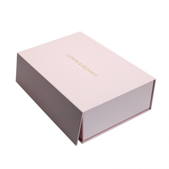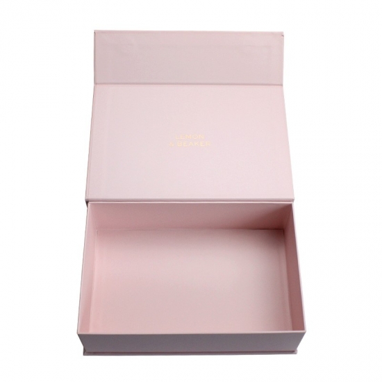 Die rosa magnetische Geschenkbox wurde aus 157 g/m² C2S-Kunstdruckpapier hergestellt, laminiert mit 2 mm grauem Karton, matter Laminierung und Heißprägung in der Farbe Pink.