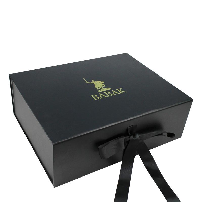 Benutzerdefiniertes Logo, Goldfolie, Heißprägung, magnetische, faltbare Stoffbox mit Band
