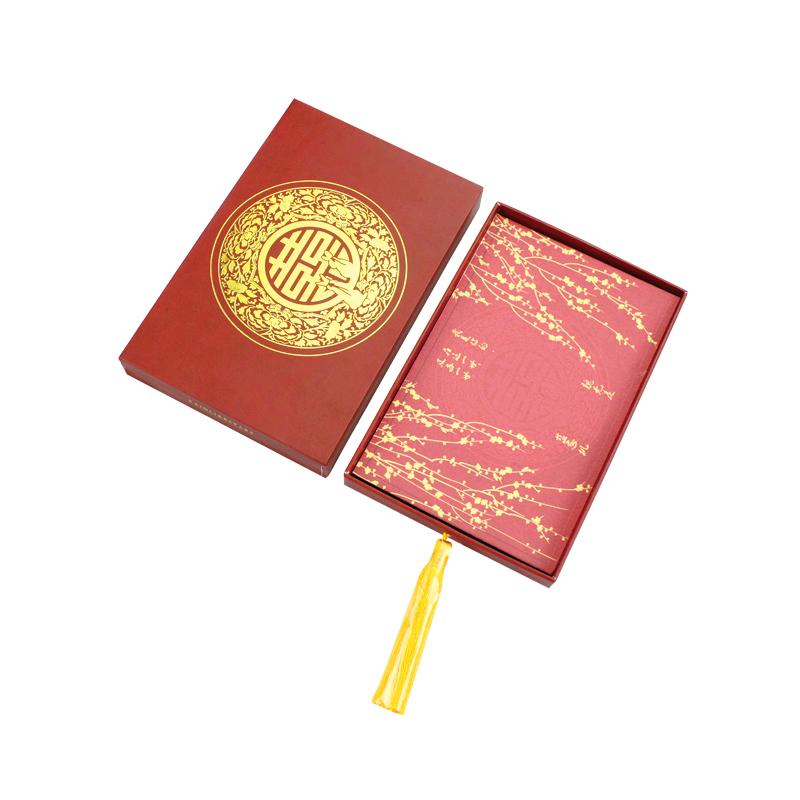 Wir sind Experten für die individuelle Herstellung von Papierschachteln, Papiertüten und anderen Papierprodukten aller Art. Jede Form, Größe, Farbe, jedes Material, jede Oberflächenveredelung und jedes Design können individuell für Sie angefertigt werden. Dieses Produkt hat eine rechteckige Form, ist vollflächig mit roter Spotfarbe bedruckt, hat ein goldenes Heißprägelogo mit goldenem Band und eine matte Laminierung. Wird normalerweise für Feste und Hochzeitseinladungen verwendet.
