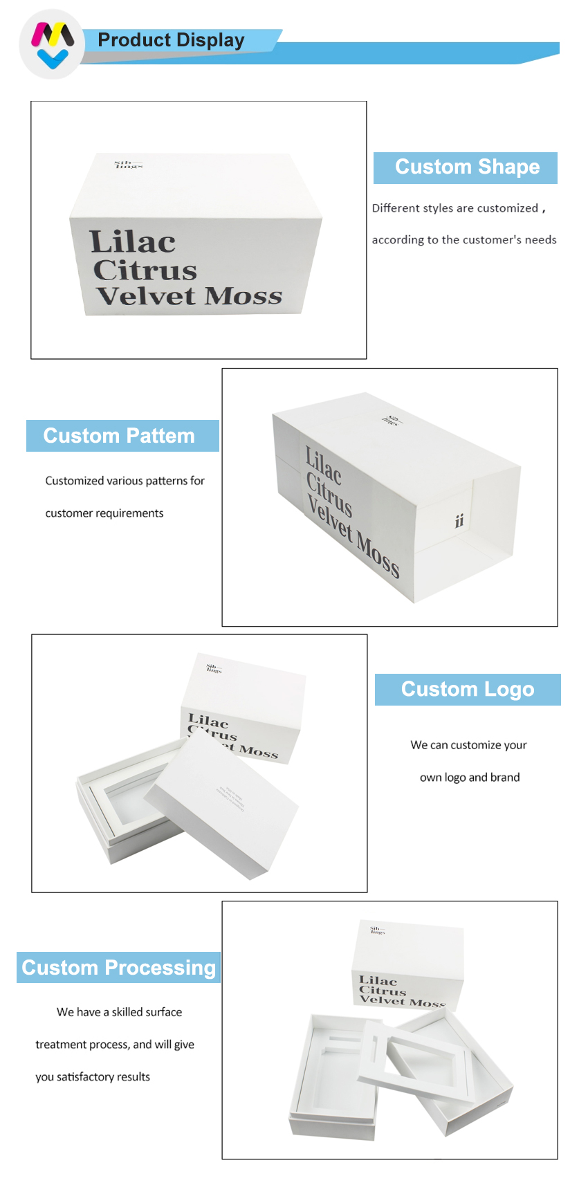 Hinweis: Alle Produktbilder, die wir auf unserer Website veröffentlicht haben, dienen nur als Referenz für die Art der Verpackung, die wir herstellen können. Sie bedeuten nicht, dass wir die gleiche Verpackung wie auf Lager verkaufen. Wir konzentrieren uns auf kundenspezifische Papierverpackungen in jeder Größe, Farbe, Struktur usw.