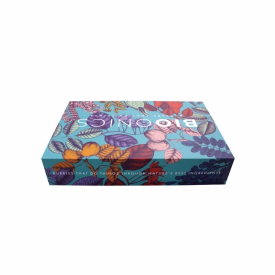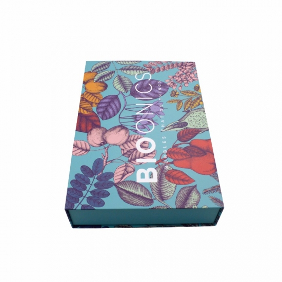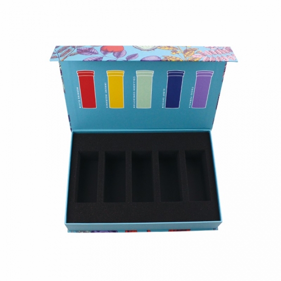 Dies ist ein Brauch Geschenkbox mit Magnetverschluss was machte aus 157 g C2S-Kunstdruckpapier + 1200 g Graupappe, auf der Außenseite der Schachtel befindet sich eine farbenfrohe Grafik mit matter Oberflächenveredelung, im Inneren der Schachtel befindet sich ein maßgeschneiderter schwarzer, gestanzter Schaumstoffeinsatz, der die Produkte an ihrem Platz hält.