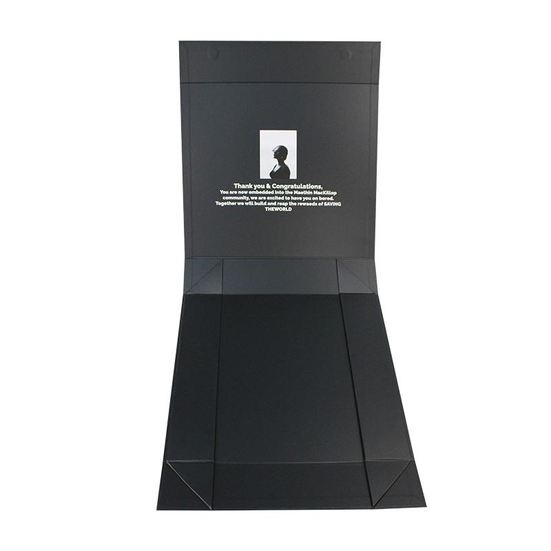 Box-Veredelung: Vollständig schwarzer Druck als Hintergrund und benutzerdefiniertes Logo und Text auf dem oberen und inneren Deckel. UV-Spotbeschichtung an bestimmten Stellen