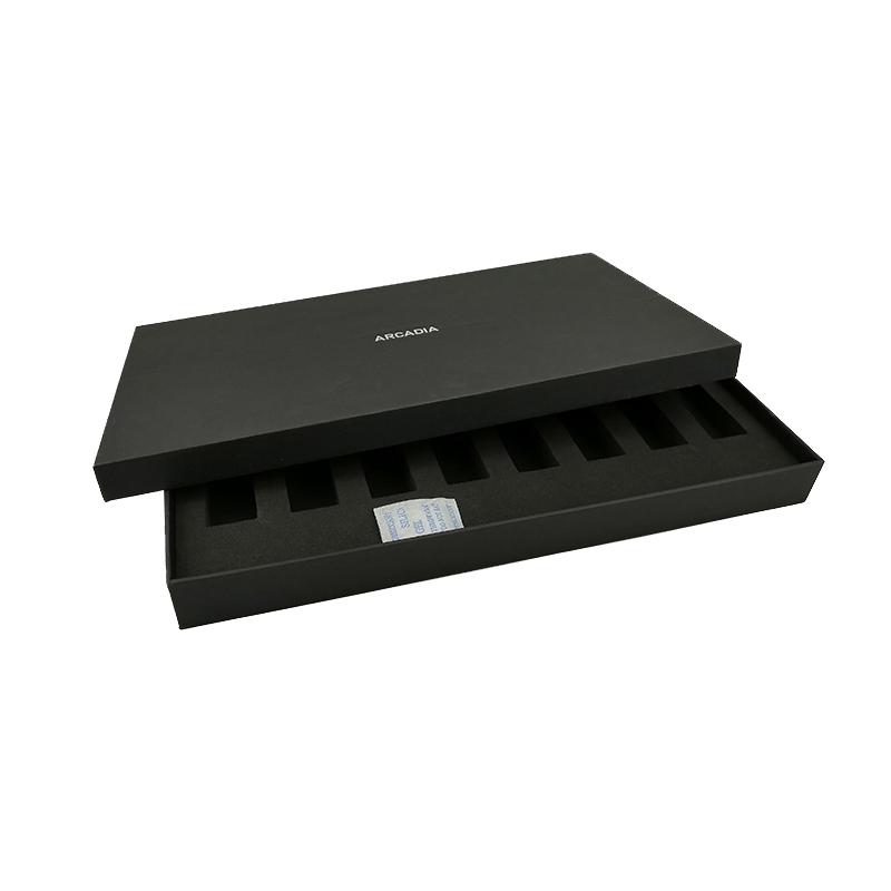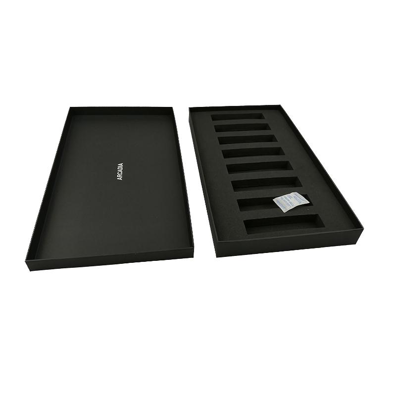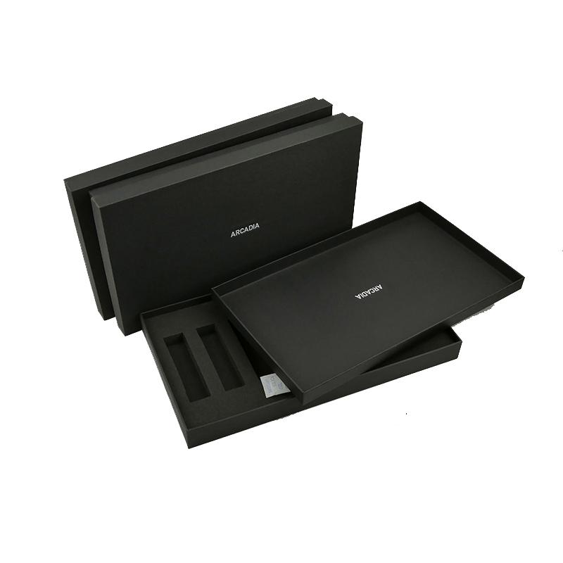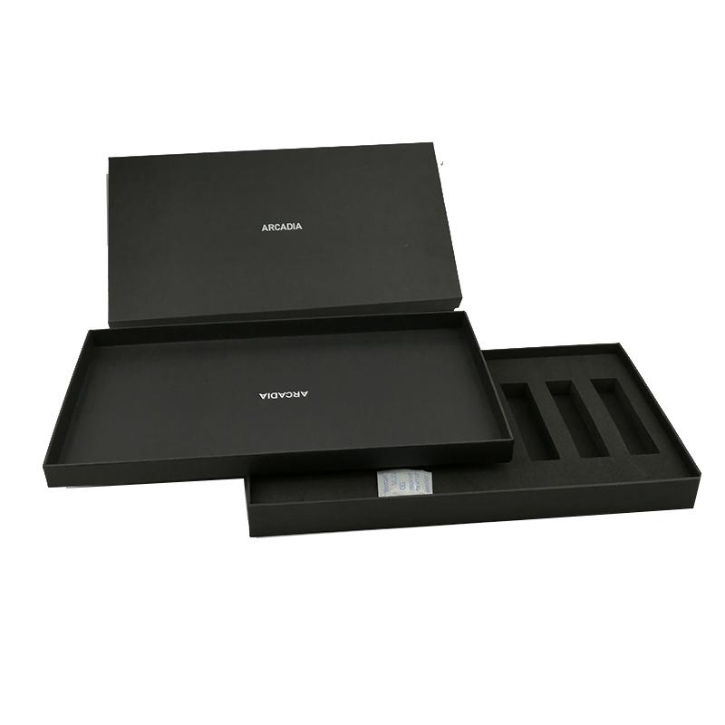 Normally 15-20 days after design/sampleBenutzerdefinierte starre schwarze Geschenkbox mit Deckel und Trennwand aus EVA-Schaum
