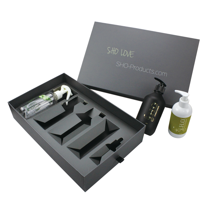 Es ist ein Schiebeschublade für Geschenke Kasten mit Bandzieher was machte von 157 g C2S-Kunstdruckpapier + 1200 g Graukarton , im Inneren der Box haben Trennwände Verwenden Sie eine schlichte graue Farbe Karton, der entsprechend der Form des Produkts gestanzt und geformt wird.