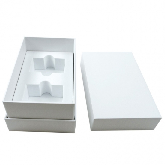 Dies ist eine maßgeschneiderte, ausreichend stabile Schachtel mit schlichtem, weißem Deckel und Boden aus 157 g C2S-Kunstdruckpapier und 1200 g Graupappe. Die Form des EVA-Schutzes im Inneren wird entsprechend der Größe der in der Schachtel enthaltenen Gegenstände angepasst.
