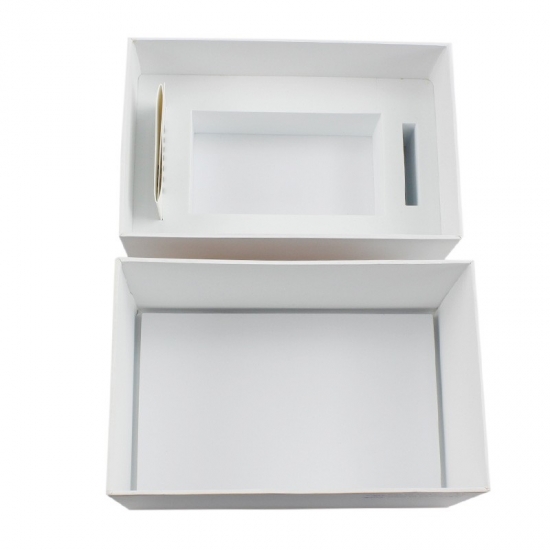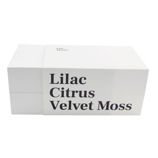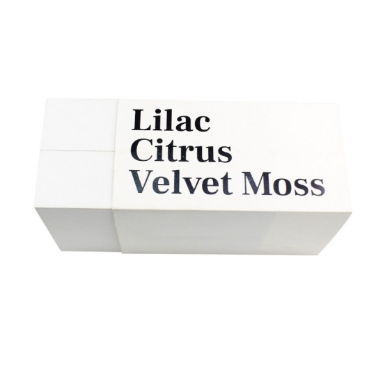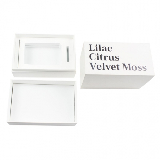Die Schachtel besteht aus 157 g Kunstdruckpapier und Graupappe und ist 29 x 17 x 11 cm lang und 11 cm hoch. Auf einer Seite der Schachtel ist ein individueller Text aufgedruckt und auf dem Deckel befindet sich ein schwarzes Logo.