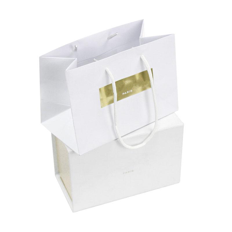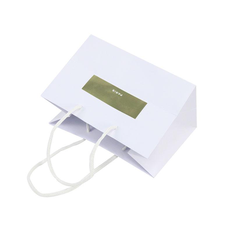 Benutzerdefinierte Geschenktüten aus weißem Papier mit Goldfolienlogo
