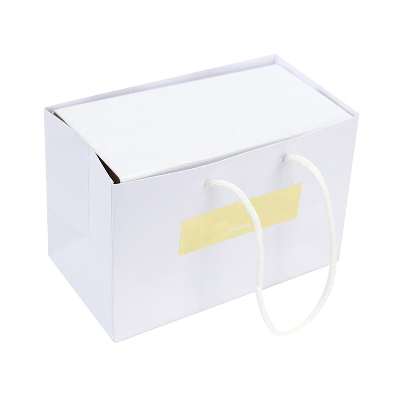 2. Taschenmaterial: 250 g/m² weißer Karton + weißer Seilgriff mit Kunststoffende