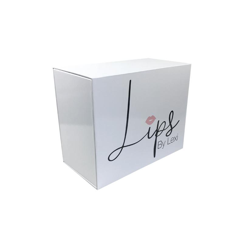 Hochwertiger, faltbarer Karton mit Hochglanzlaminierung aus beschichtetem Kunstdruckpapier und Graupappe mit Magnetverschluss. Wird normalerweise zum Verpacken von Schuhen, Kleidung und anderen Konsumgütern verwendet.