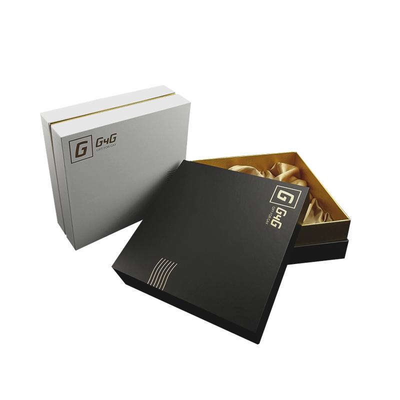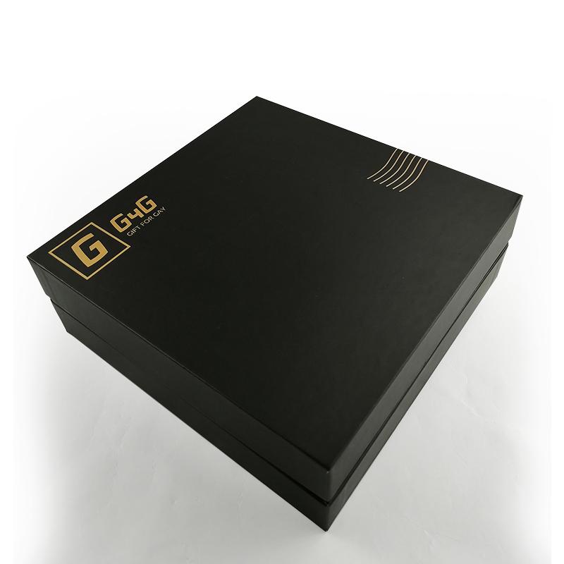 Großhandels-Geschenkbox mit Deckel und individuellem Logodruck im CMYK-Druck, mit Kunststoffeinsatz zum Schutz des Produkts im Inneren.