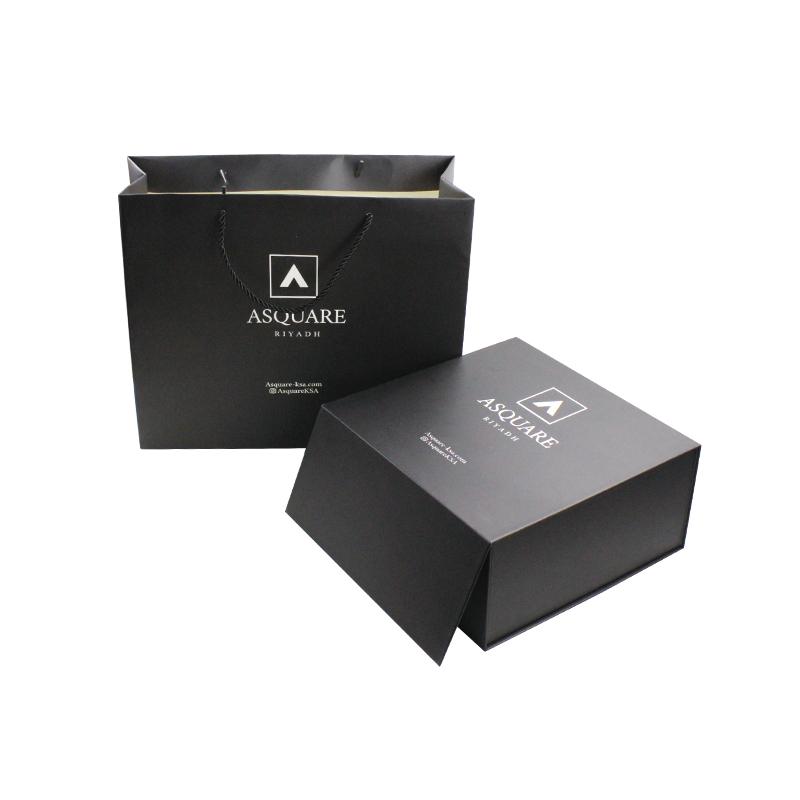 Klassiker schwarze Faltschachteln , hergestellt aus 157 g/m² Kunstdruckpapier, laminiert mit 2 mm Premium-Hartspanplatte. Mit vollflächigem Schwarzdruck und Anti-Kratz-Folie auf den Schachteln. Als Geschenkverpackung können wir auch die Papiergeschenktüte passend zu den Geschenkschachteln bedrucken.