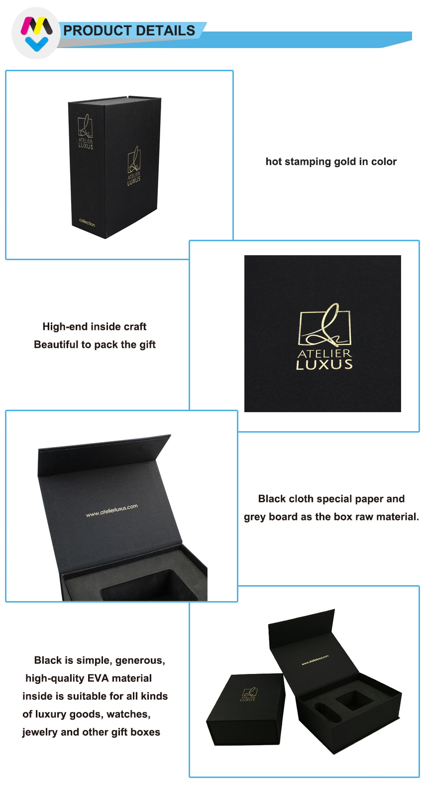 Normally 15-20 days after design/sampleDekorative magnetische Geschenkboxen Großhandel Schwarze magnetische Verschlussbox mit EVA-Schaum