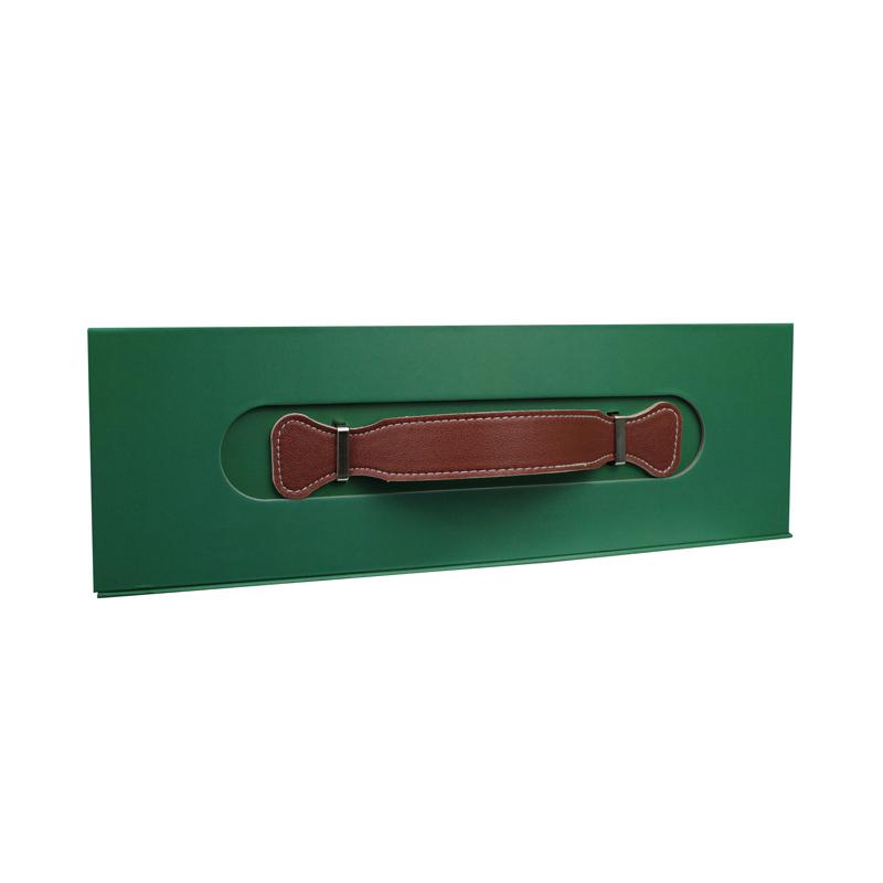 Formschöne Papierbox mit Griff aus 157 g/m² CMYK-Vollfarbdruckpapier, montiert auf 2 mm starkem Hartkarton. Mit dem Ledergriff und der Innenseite aus weichem Satin präsentiert sich Ihr Weihnachtsgeschenk Ihren Kunden oder Freunden hervorragend.