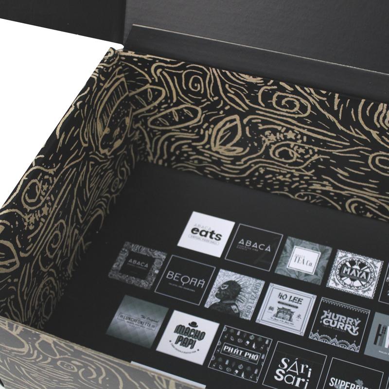 Box-Veredelung: CMYK4C-Druck außen und innen, matte Laminierung