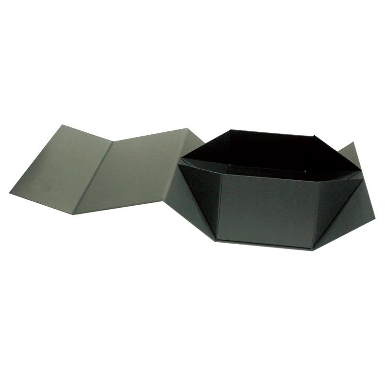 Exklusive, großzügige, modische, hochwertige Faltschachtel aus schwarzem Karton, die Ihnen auf den ersten Blick ins Auge fällt.
