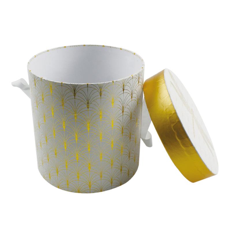 circle gold foil florals cylinder turned edge black box with lid