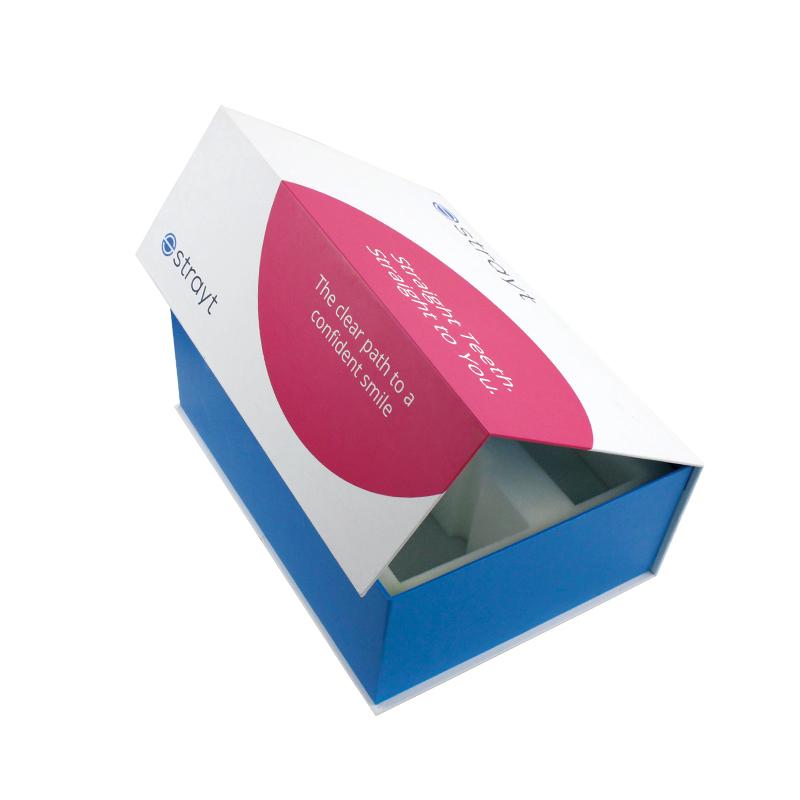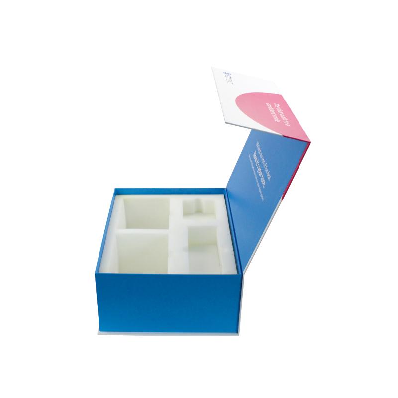 Luxuriöse Geschenkbox aus Papier mit Magnetverschluss und weißer Schaumstoffbox in Buchform