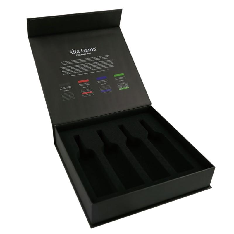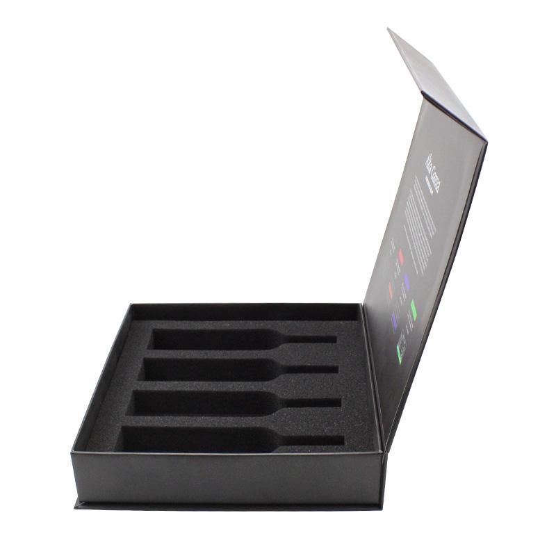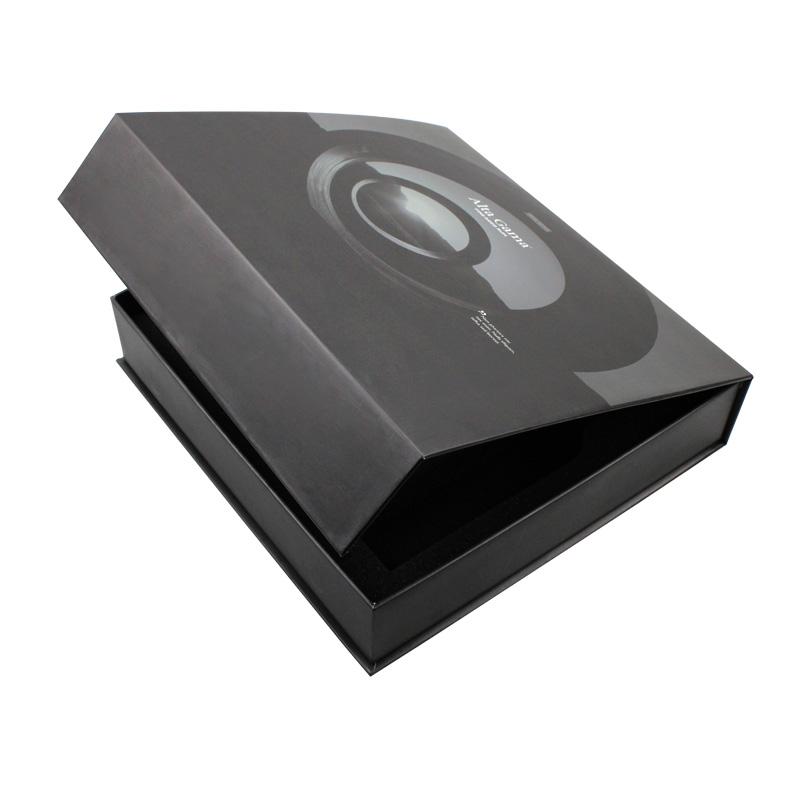 Dies ist ein schwarzes Buch in Form magnetische Verpackungsbox mit einer Schaumstoffeinlage, die entsprechend Ihrer Produktgröße zugeschnitten werden kann