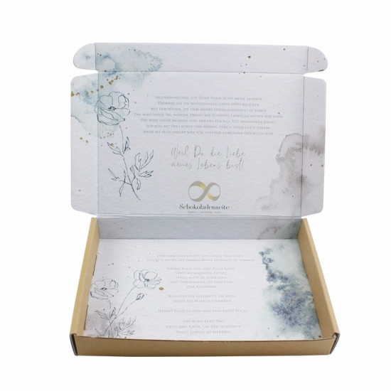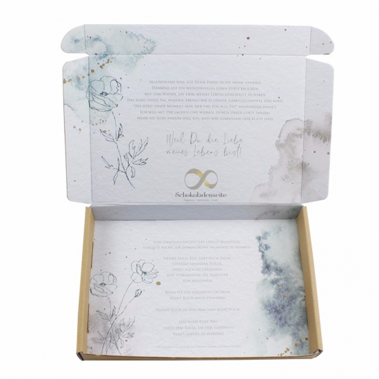 Dies ist ein personalisierte Versandkartons die von BE Flute+ hergestellt wird 350 g CCNB , voller einzigartiger und eleganter Designmusterdrucke im Inneren der Schachtel, außen in brauner Kraftfarbe.