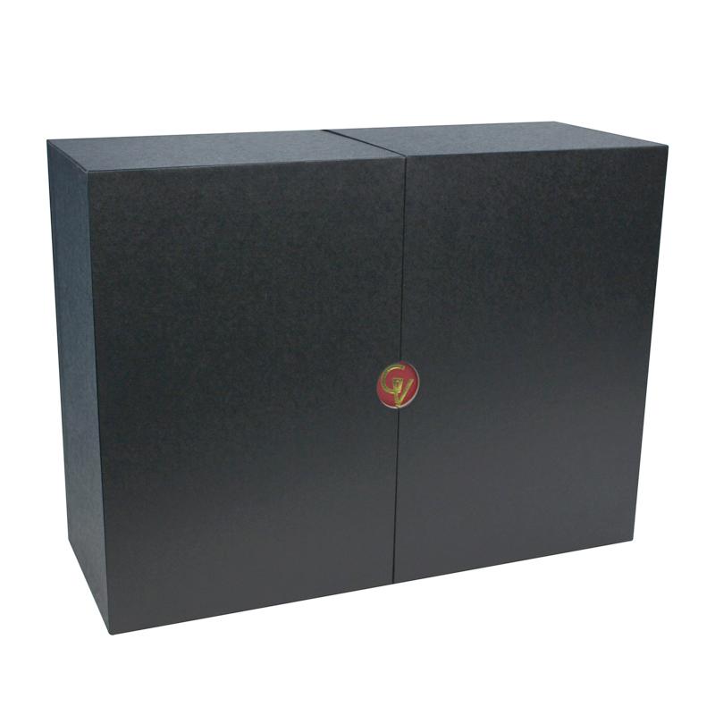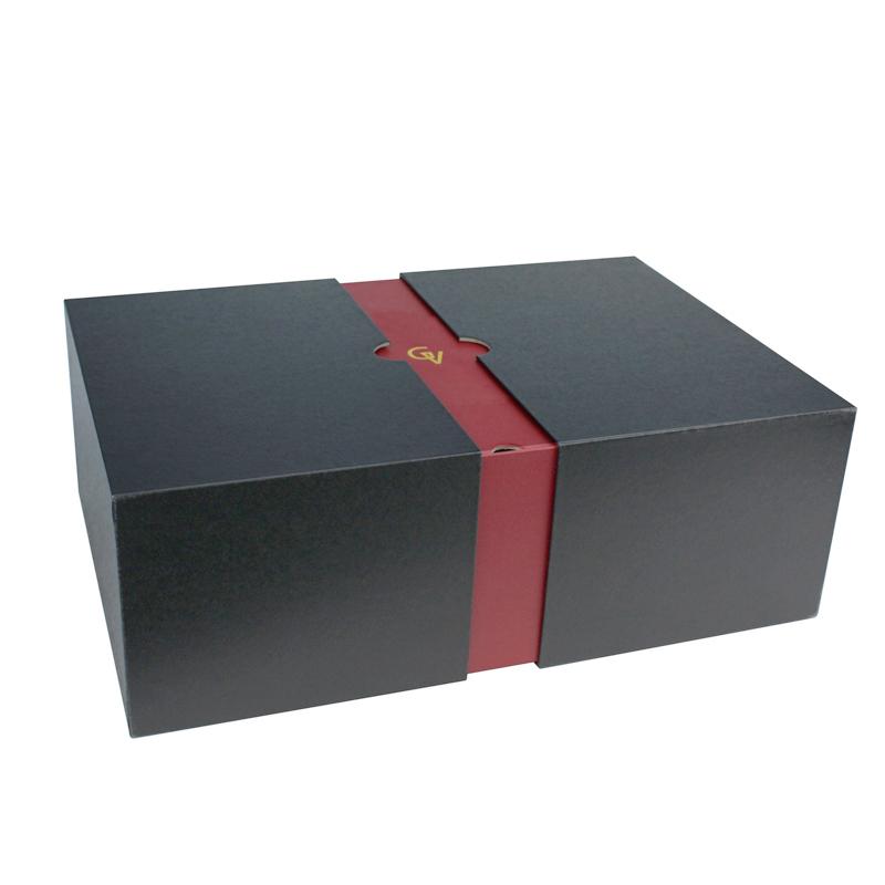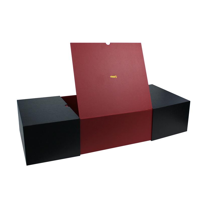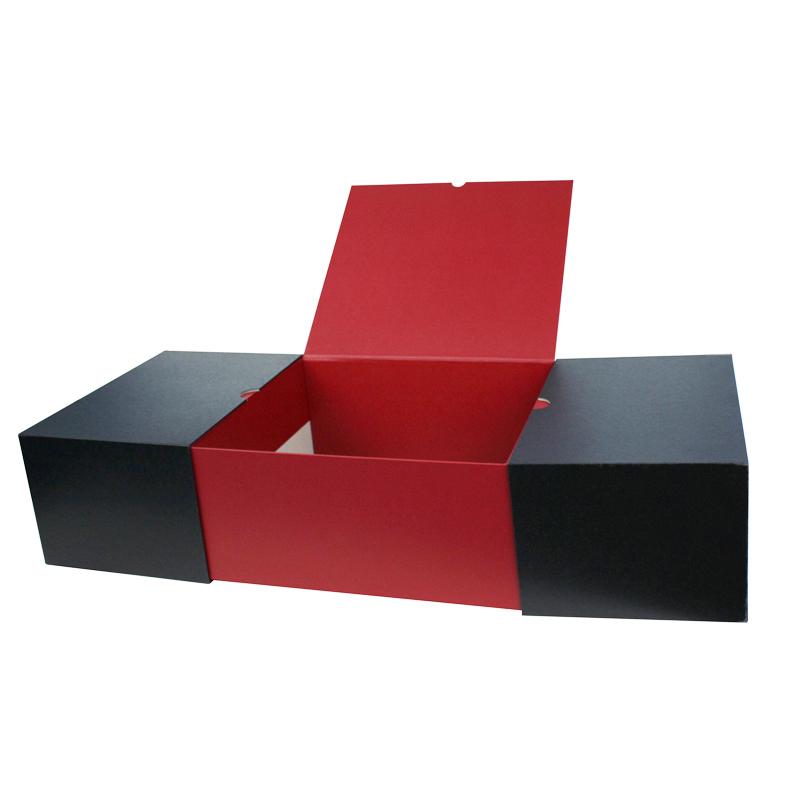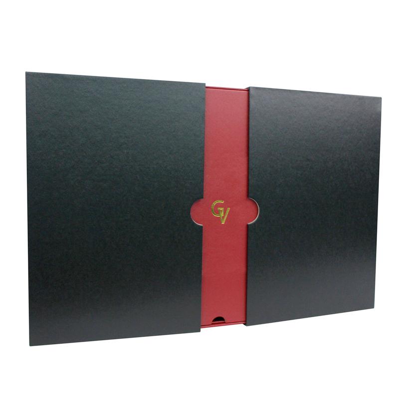 Hochwertiger, individuell gestalteter Karton mit zwei herausziehbaren Klappen aus schwarz-rotem Strukturpapier, der häufig zum Verpacken von Parfüms, Teeflaschen und Geschenken zu einem erschwinglichen Preis verwendet wird.