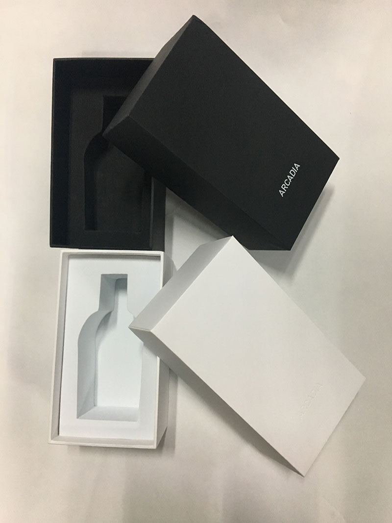 Hergestellt aus schwarzem Spezialpapier/157 g C2S-Kunstdruckpapier + 1200 g Graupappe, Einlage aus gutem und hartem schwarz-weißem EVA-Schaum, der die Produkte an ihrem Platz hält.