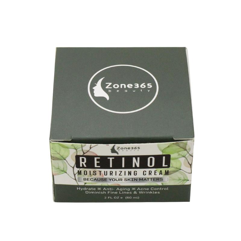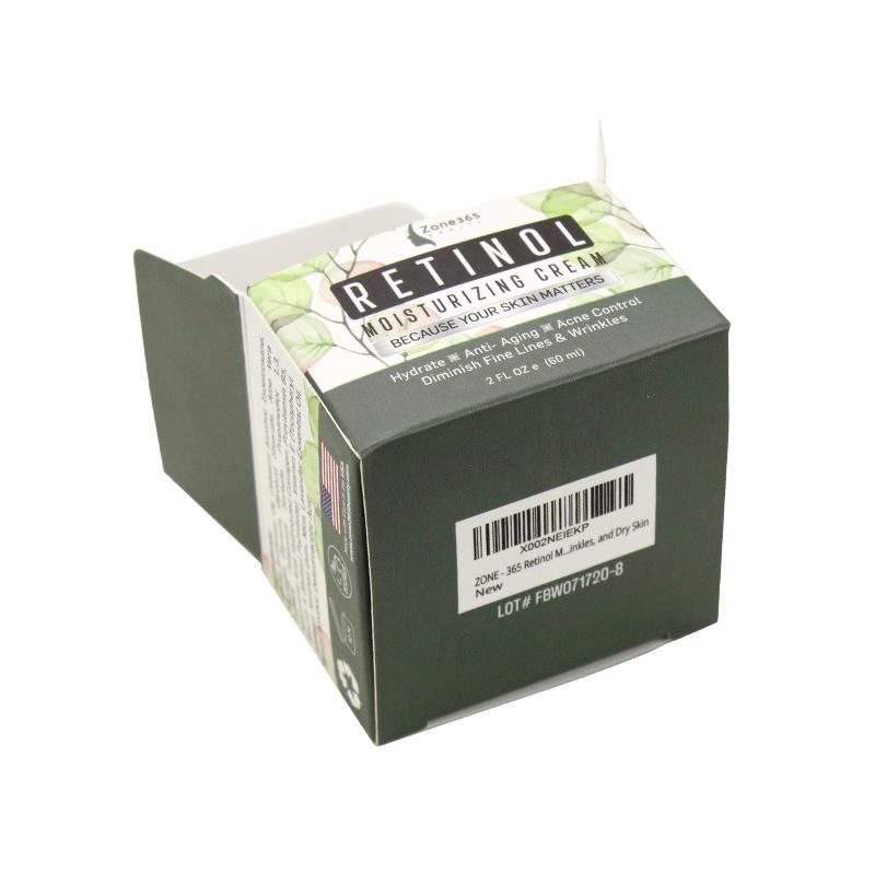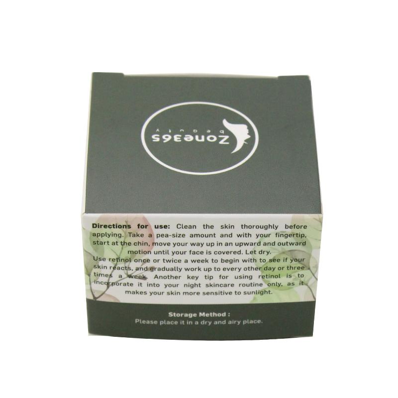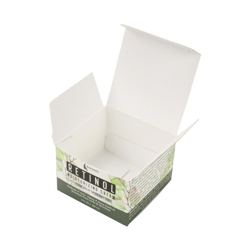 Dies ist ein Kosmetik-Softkarton was machte aus einseitig beschichtetem Kunstdruckpapier mit 350 g/m², Außenseite der Schachtel voller Text und Logodruck, einschließlich Anleitung und Barcode, Innenseite weiß, leer und ohne Aufdruck.