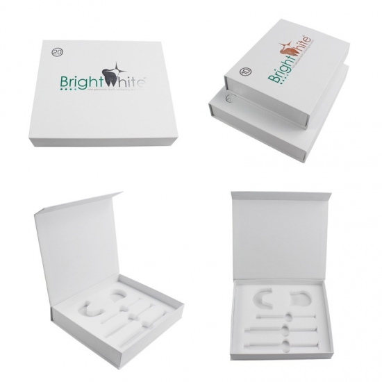 Dies ist ein Magnetbox aus Silberfolie was machte aus C2S-Kunstdruckpapier + 2 mm Graupappe, Außen- und Innenseite der Schachtel sind weiß, das Logo auf dem Deckel ist eine Silberfolienprägung und die EVA-Innenseite kann nach Ihren Wünschen eine individuelle Form haben.