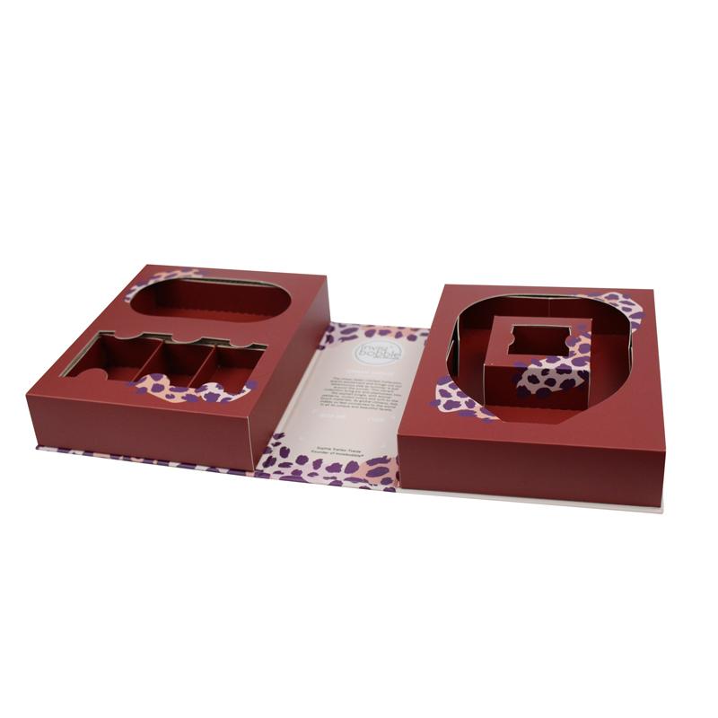 Gut gestaltete Verpackungsboxen für Haarpflegeprodukte, außen aus Hartkarton und innen aus Wellpappe, um die einzelnen Produkte zu trennen. Von außen betrachtet handelt es sich um eine luxuriöse Hartkartonbox für Premiumprodukte. Mit Wellpappe-Einlage ist sie günstiger als herkömmliche Schaumstoffeinlagen und sieht optisch ansprechender aus als Kartoneinlagen.