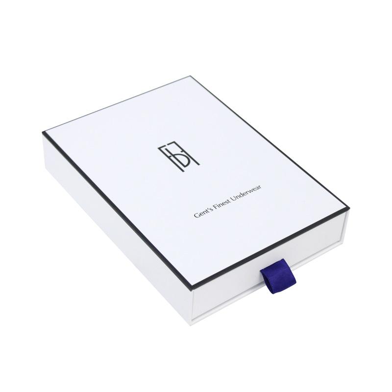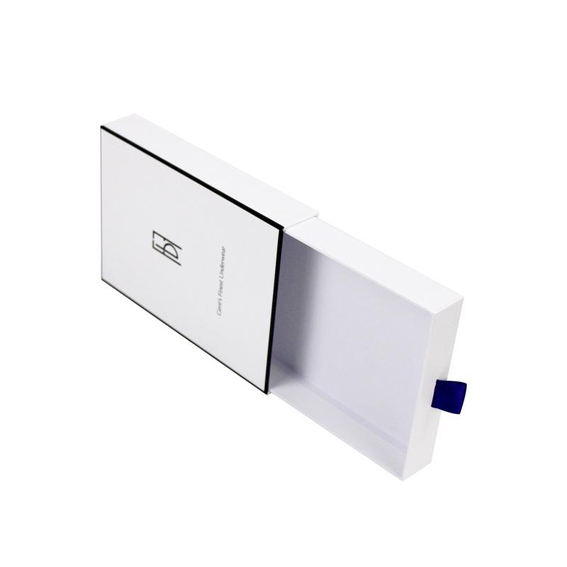 Luxuriöse Schubladenbox aus stabilem Papier mit hochwertigen Druck- und Veredelungsoptionen. Öffnung mit speziellen Ausschnitten und Bändern.