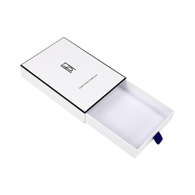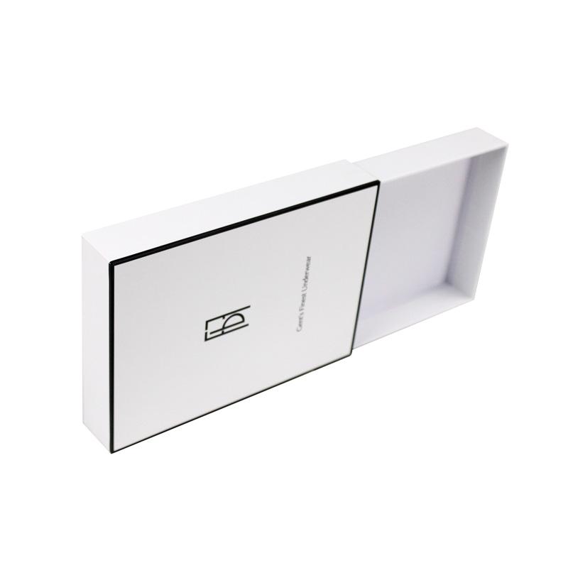 Weiß und schwarz bedruckte Schubladenkartons aus starrem Karton