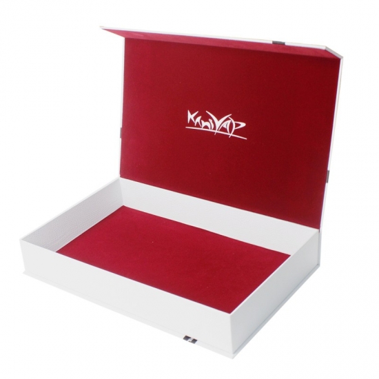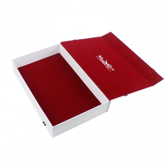 Dies ist ein Buch in Form magnetische Geschenkboxen was machte aus weißem strukturiertem Spezialpapier + 1200 g grauer Pappe, Innenbezug mit rotem Samtstoff, der die Schachteln noch hochwertiger macht. Wir können die Größe nach Ihren Wünschen anpassen.